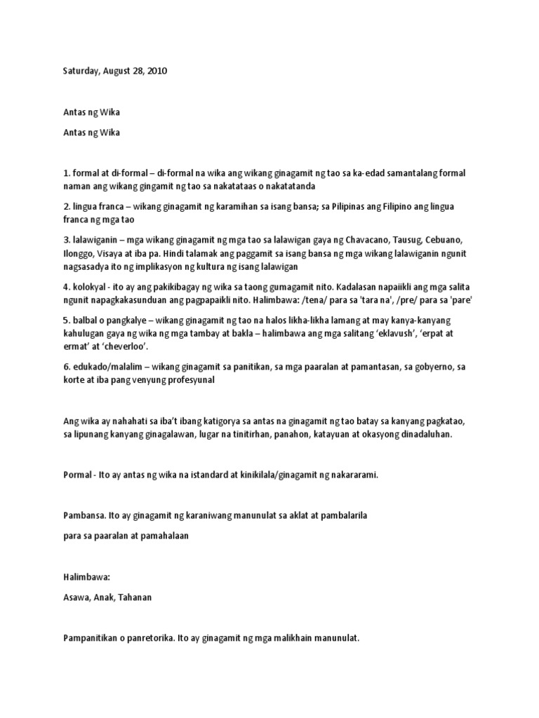 Anong Antas Ng Wika Ang Waswit parawika Sabtu, 29 Oktober 2022 Facebook Twitter Telegram Salita 1 Tadyak Ng Tadhana Brainly Ph Antas Ng Wika Docx Gawain Suriin Kung Ang Mga Sumusunod Na Salita Ay Pampanitikan Pambansa Balbal Kolokyal O Lalawiganin Isulat Ang Sagot Sa Course Hero Antas Ng Wika Pdf LihatTutupKomentar Post Selanjutnya Post Sebelumnya