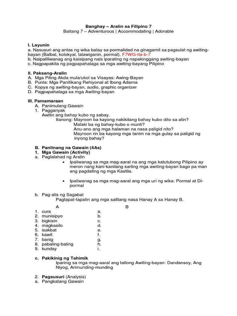 Banghay Aralin Sa Antas Ng Wika Batay Sa Pormalidad parawika Jumat, 14 Oktober 2022 Facebook Twitter Telegram Antas Ng Wika Batay Sa Pormalidad Filipino Teacher Arniza Youtube Banghayaral Fil7 Pdf Banghay Aralin Sa Filipino 7 Ang Sulating Ito At Tungkol Sa Lesson Plan Sa Filipino 7 Antas Ng Wika Studocu LihatTutupKomentar Post Selanjutnya Post Sebelumnya