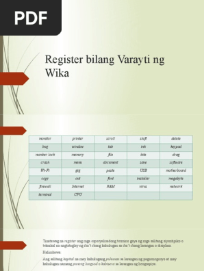 Halimbawa Ng Rehistro Ng Wika Sa Iba't Ibang Larangan parawika Senin, 03 Oktober 2022 Facebook Twitter Telegram Mga Tungkulin Barayti At Rehistro Ng Wika Register Bilang Varayti Ng Wika Pdf Iba T Ibang Register Ng Wika Batay Sa Larangan Youtube LihatTutupKomentar Post Selanjutnya Post Sebelumnya