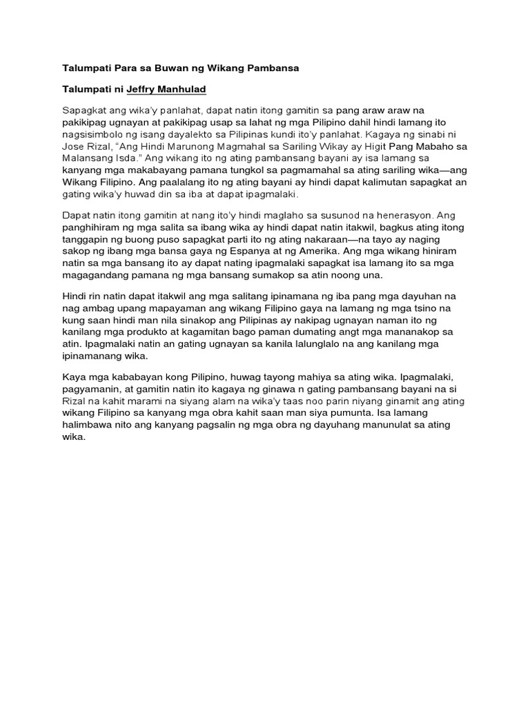 Talumpati Buwan Ng Wika parawika Sabtu, 22 Oktober 2022 Facebook Twitter Telegram Buwan Ng Wika Pdf Halimbawa Ng Maikling Talumpati Tungkol Sa Wika Ceap Wika Ng Kasaysayan Kasaysayan Ng Wika Ang Mga Facebook LihatTutupKomentar Post Selanjutnya Post Sebelumnya